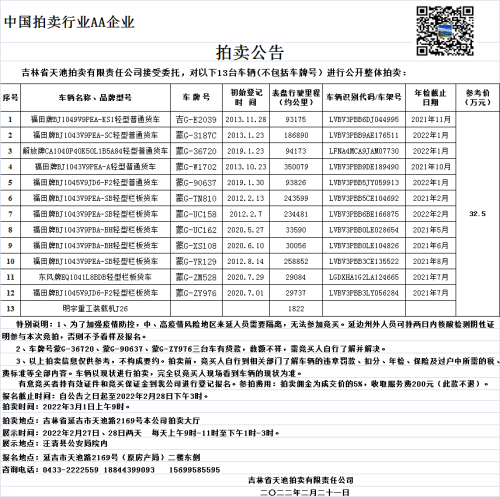 您好,欢迎访问吉林省天池拍卖有限责任公司网站!