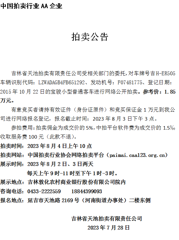 上一篇: 图们市石岘镇延边石岘双鹿实业有限责任公司所属林地501林班至517林班,面积2920公顷的林下经济作物松茸、松塔、蘑菇等产品的采集承包经营权拍卖